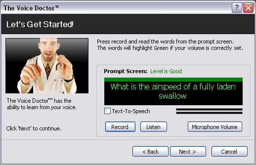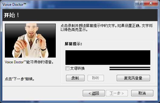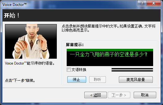 Voice Doctor向导将启动。点击“下一步"开始学习练习。