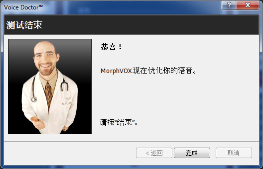 测试结束: 完成了!现在利用MorphVOX优化你的语音。